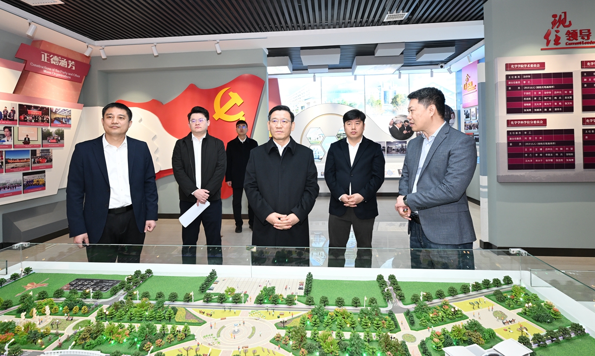 ,田辉实地考察院史馆、含硼有机功能材料实验室、高分子合成化学实验室、功能复合固体能源材料实验室,深入调研化学学科发展建设、科研成果转化、服务地方发展以及党建工作等情况。田辉指出,哔咔漫画