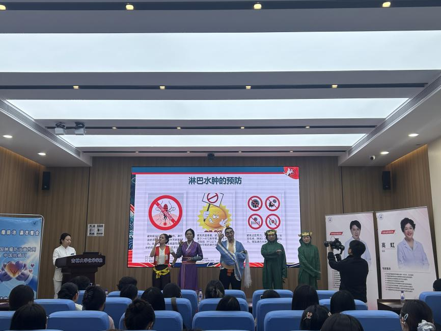 随后,赵大玮、高虹及其专业医师团队带来了精彩的健康知识宣讲,深入浅出地讲解了乳腺、甲状腺疾病的常见症状、预防措施及定期筛查的重要性。宣讲结束后,一场生动有趣的小品演绎将常见健康误区与正确防治知识融入生活场景,引得现场掌声连连。在趣味答题互动环节,师生们踊跃抢答,在轻松氛围中巩固了所学知识,现场气氛热烈。专家们还为在场师生提供了一对一的现场答疑与健康咨询,耐心解答个性化疑问并给予诊疗建议。