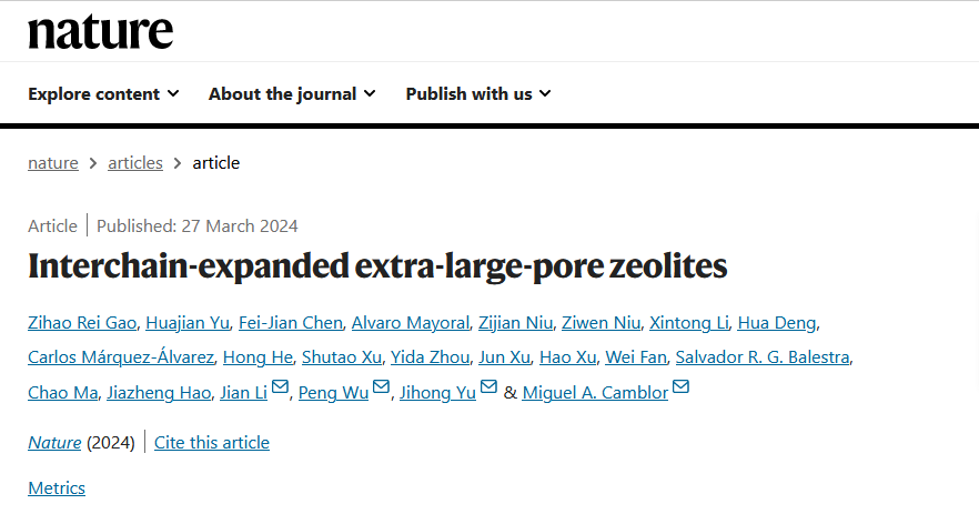 Stable aluminosilicate zeolites with extra-large pores that are open through rings of more than 12 tetrahedra could be used to process molecules larger than those currently manageable in zeolite materials. However, until very recently, they proved elusive. In analogy to the interlayer expansion of layered zeolite precursors, we report a strategy that yields thermally and hydrothermally stable silicates by expansion of a one-dimensional silicate chain with an intercalated silylating agent that separates and connects the chains. As a result, zeolites with extra-large pores delimited by 20, 16 and 16 Si tetrahedra along the three crystallographic directions are obtained. The as-made interchain-expanded zeolite contains dangling Si–CH3 groups that, by calcination, connect to each other, resulting in a true, fully connected (except possible defects) three-dimensional zeolite framework with a very low density. Additionally, it features triple four-ring units not seen before in any type of zeolite. The silicate expansion–condensation approach we report may be amenable to further extra-large-pore zeolite formation. Ti can be introduced in this zeolite, leading to a catalyst that is active in liquid-phase alkene oxidations involving bulky molecules, which shows promise in the industrially relevant clean production of propylene oxide using cumene hydroperoxide as an oxidant.