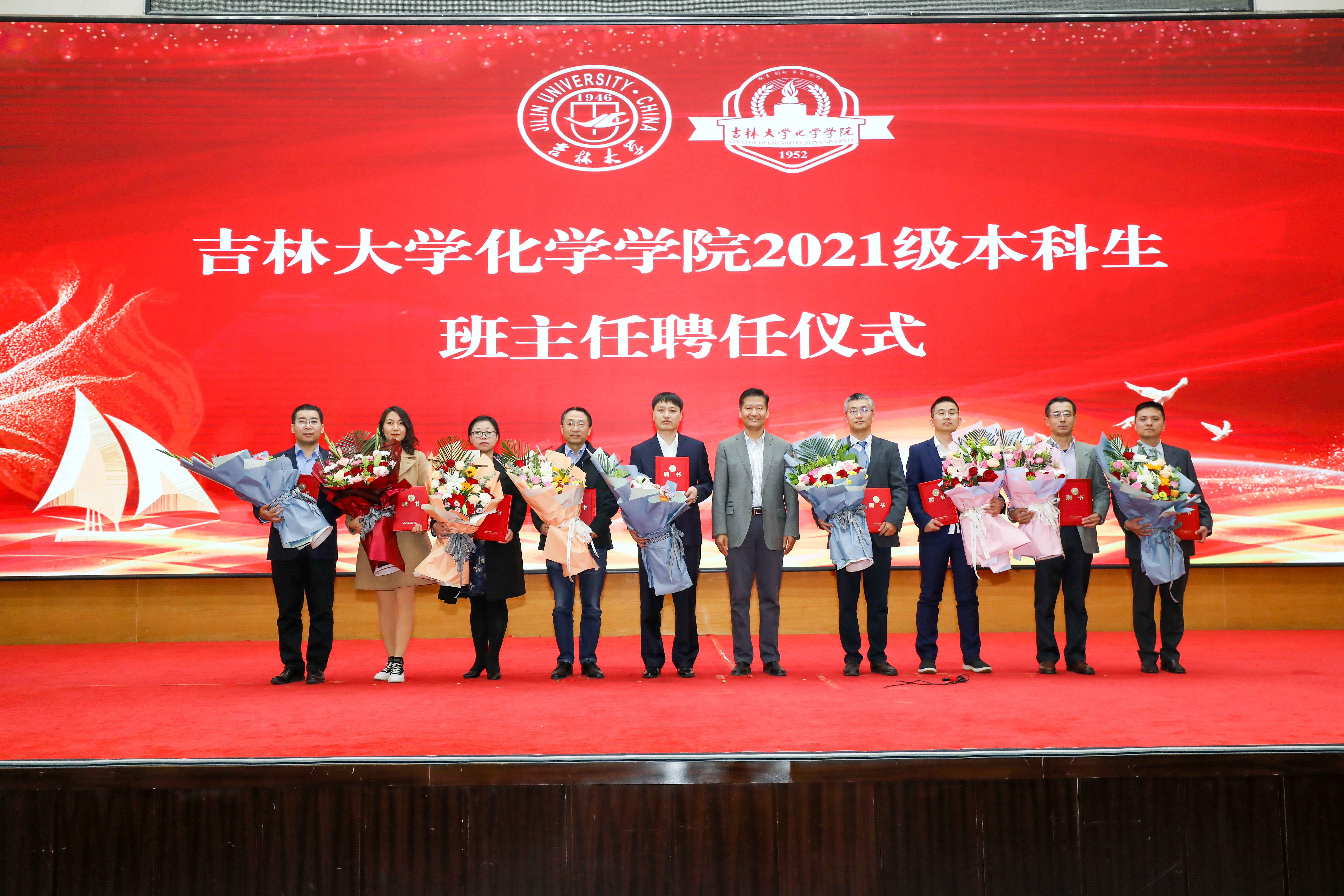大会在雄壮的国歌声中拉开了序幕。首先举行了2021级本科生班主任聘任仪式,学院党委书记宁德宽老师为20位2021级本科生班主任颁发聘书。本科生班主任制度建设是学院推进“三全育人”综合改革的一项重要内容,为充分发挥优秀专业教师在大学生思想政治教育的重要作用,近年来学院为四个年级聘任了包括冯守华院士、于吉红院士在内的49名专业教师担任本科生班主任,发挥专业优势,加强学业指导。