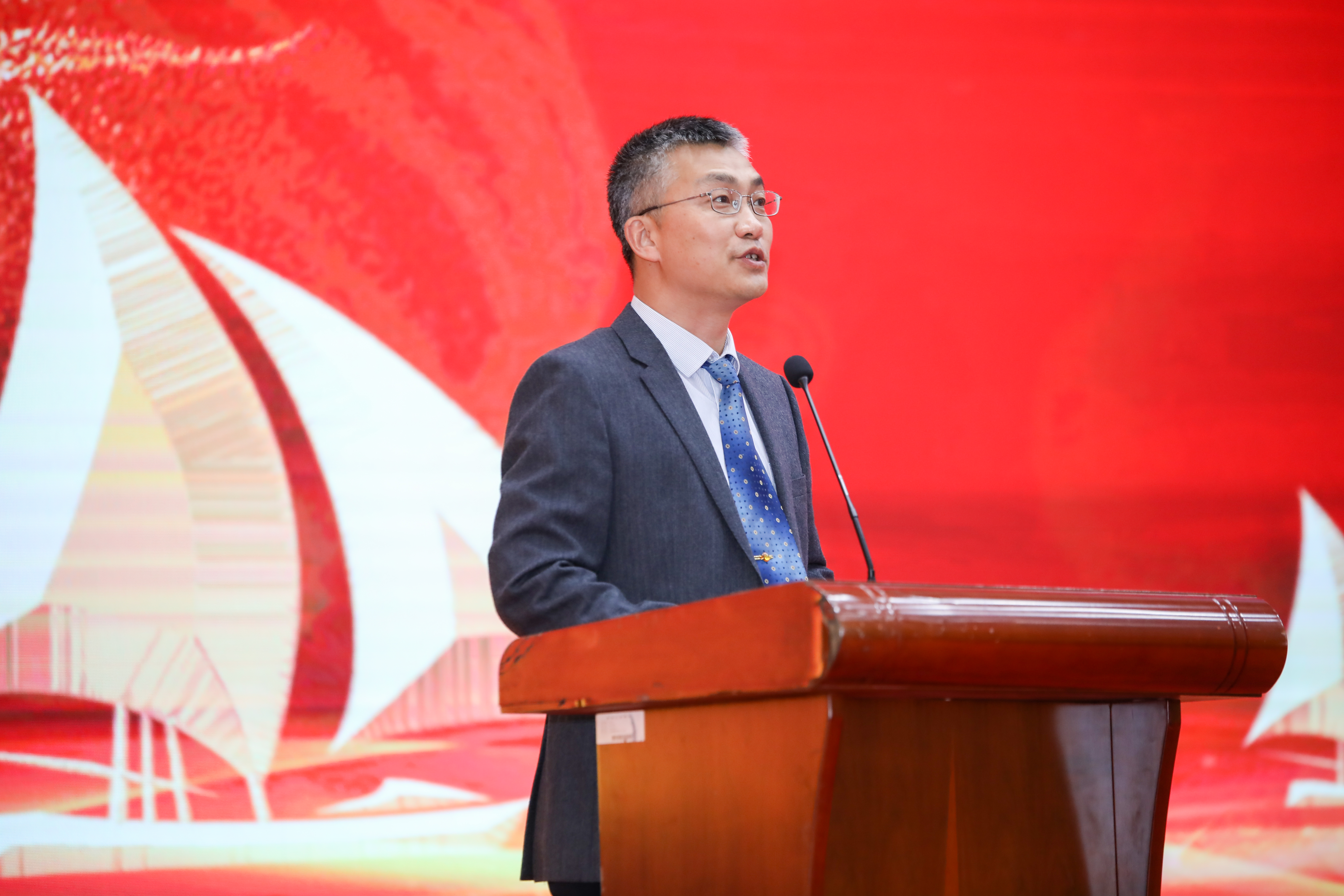 2021级5班班主任李云峰教授作为教师代表发言,他勉励同学们做人要心中有爱、心怀感恩,做学问要百折不挠、无畏挫折,立志向要仰望星空、脚踏实地。
