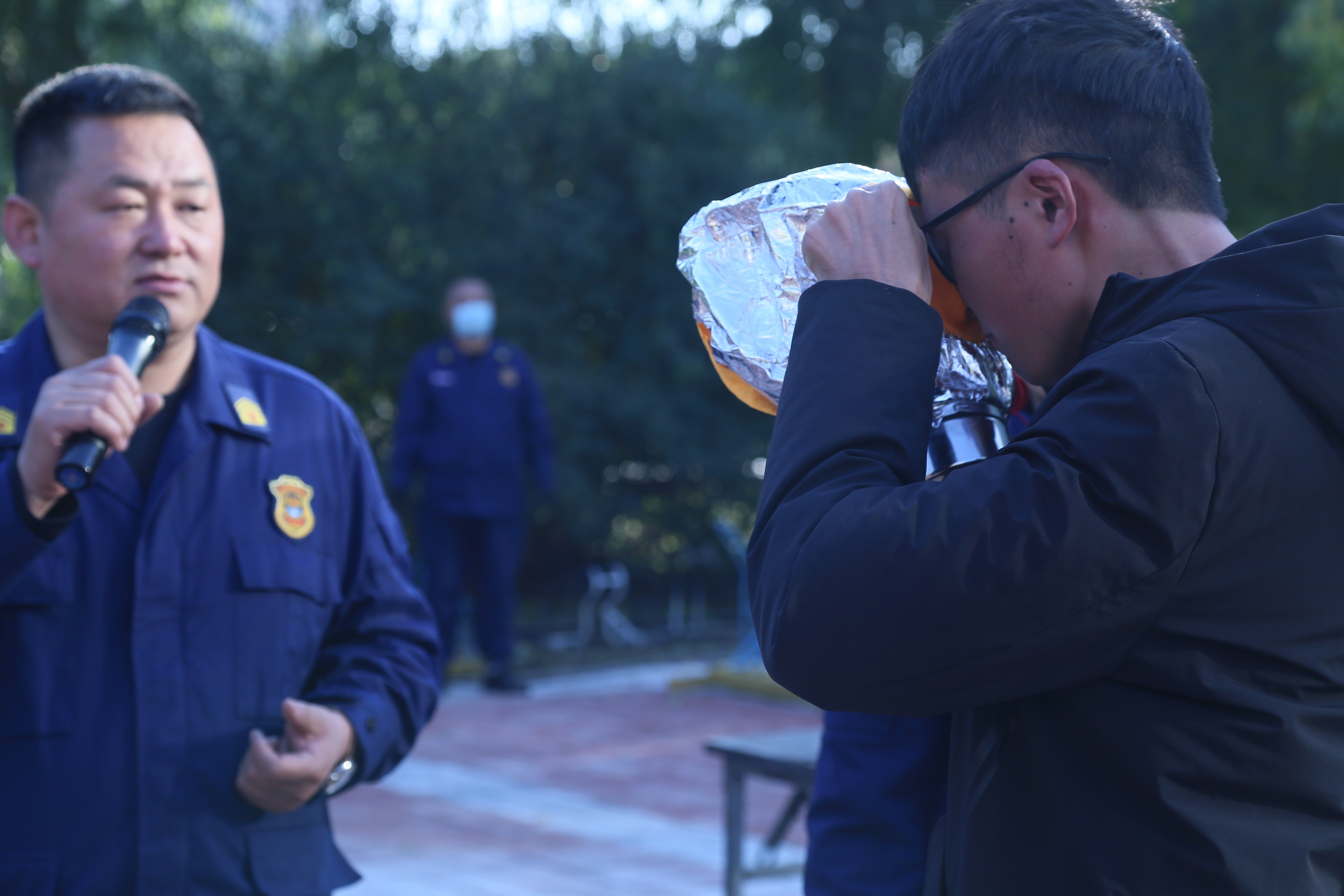 在消防器材使用培训环节,保卫处消防科董立明老师详细讲解并演示了干粉灭火器、二氧化碳灭火器、灭火毯、防烟防火面罩等消防器材的使用方法。在保卫处老师的指导下,30余人次学生参与消防器材的使用学习。