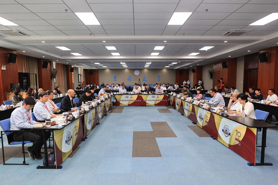 化学学科创建70周年的重要活动。会议研讨环节,与会的院士专家对吉大化学的发展建设和人才培养成效给予了高度评价,专家们一致建议吉大化学坚持“四个面向”,继承优良教学传统、发扬学科特色优势、加强学科交叉合作、激发青年人才潜能、形成学科发展合力,不断激发内生动力,推动学科的高质量内涵式发展。