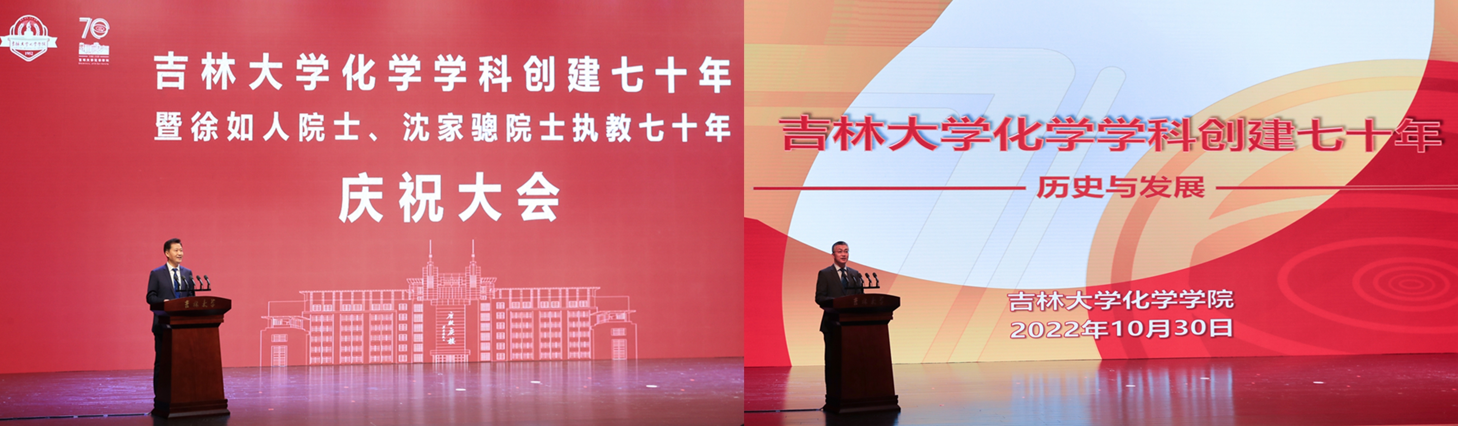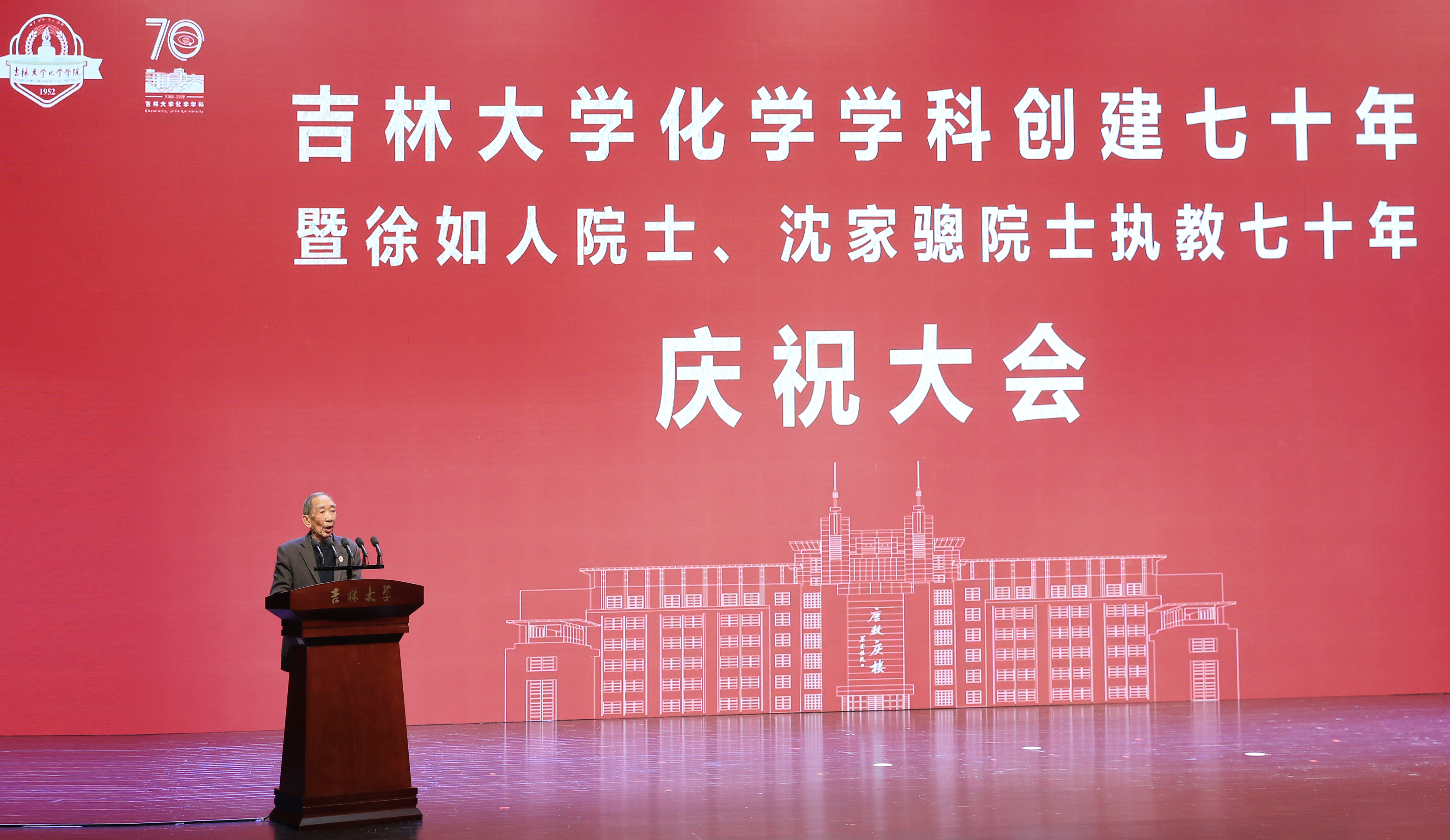 陈拥军代表国家自然科学基金委交叉科学部对吉大化学学科创建70年表示祝贺,向徐如人院士、沈家骢院士执教70年致以敬意。他表示,吉大化学创建70年来,始终与党和国家同呼吸,与时代和社会共命运,扎根基础研究精勤不辍,瞄准产业急需领域和关键核心技术攻坚克难,在国际学界赢得了广泛声誉,为推动国家科技进步和地方经济社会发展贡献了重要力量。多年来,国家自然科学基金委与吉大化学相互支持、携手共进。未来,交叉科学部也将与以吉大化学为代表的优势学科一道,面向国家重大需求和新兴科学前沿交叉领域,推动形成新的学科增长点和科技突破点,致力于为国家解决关键科学问题和“卡脖子”技术突破。