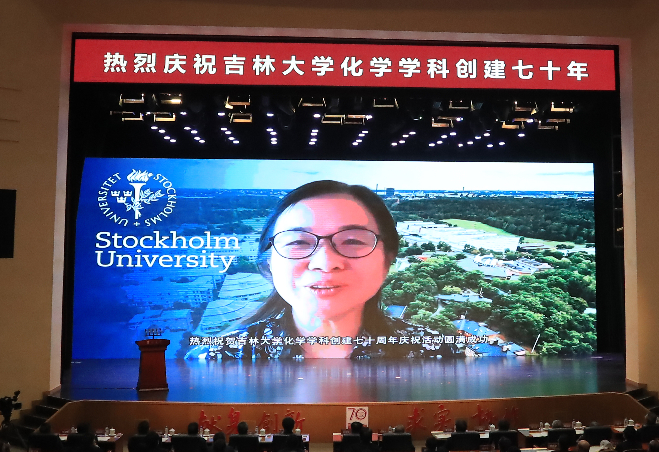 教师发言,向吉大化学七十华诞表示祝贺,向徐如人院士、沈家骢院士致以崇高敬意和诚挚祝福。她表示,吉大化学的发展始终与国家高质量人才培养紧密相连,始终与国家重大需求紧密相连,始终与国际科技前沿紧密相连,始终与服务社会紧密相连,培养了一大批杰出人才,打造了一支堪当科教强国重任的师资队伍。站在新的历史起点上,学院广大教师将坚决扛起深入实施科教兴国战略、人才强国战略、创新驱动发展战略重大职责使命,传承优良传统,紧握接力棒,把化学学科推向新的高峰,在中华民族伟大复兴新征程上谱写新的荣耀与辉煌。
