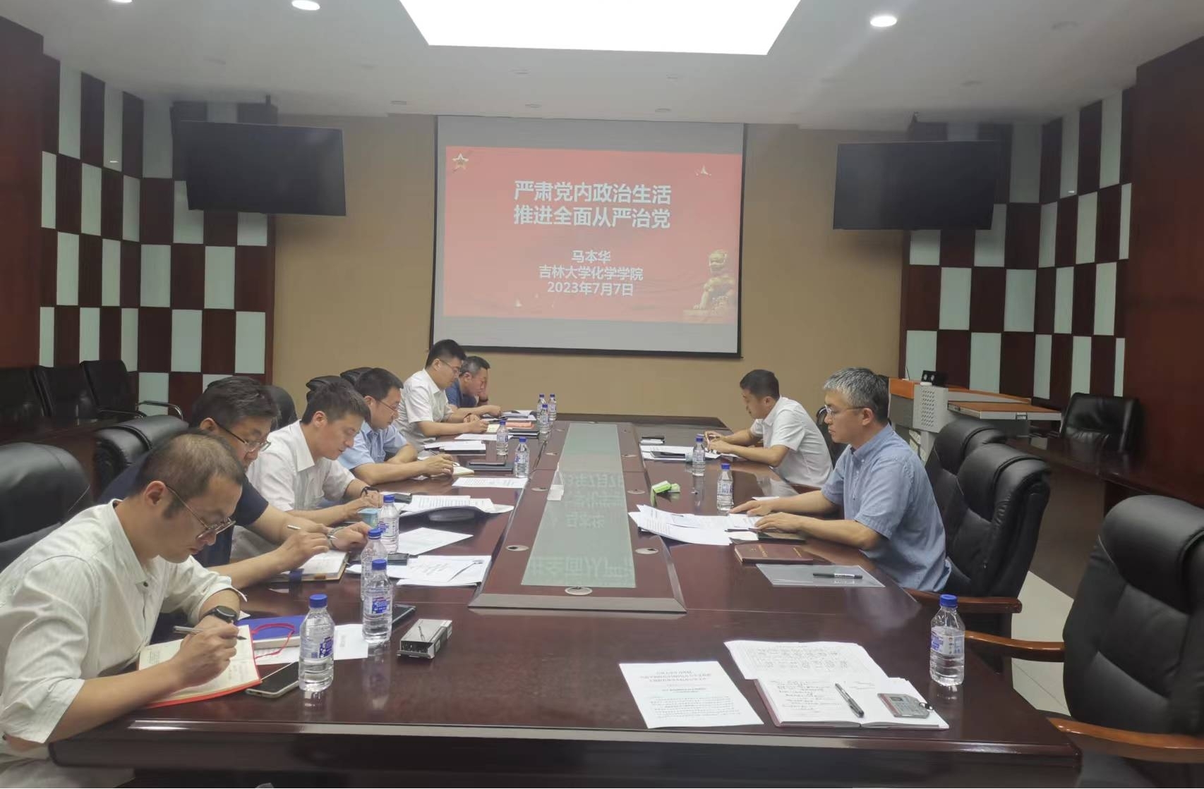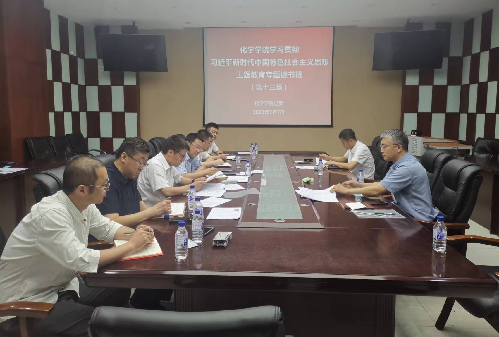 党委在唐敖庆楼A308会议室组织召开了学院党委理论学习中心组会议暨学习贯彻习近平新时代中国特色社会主义思想主题教育专题读书班(第十三场),学院处级领导干部参加了此次会议。会议由党委书记马本华主持。