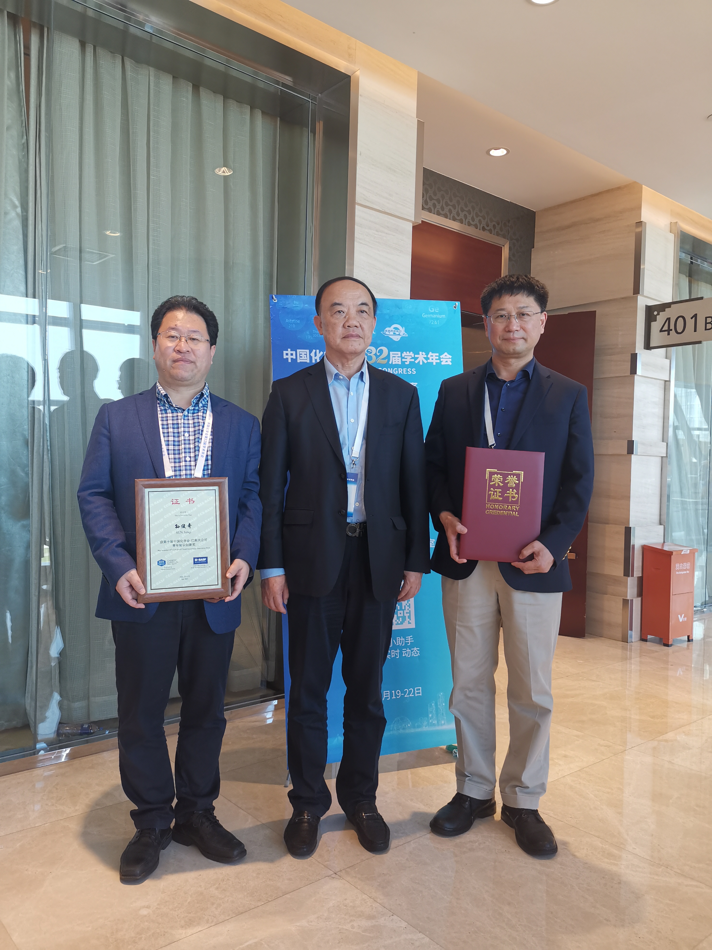 孙俊奇教授因在自修复/可修复高分子材料研究方面取得的重要创新成果,获得第十届中国化学会——巴斯夫公司青年知识创新奖。