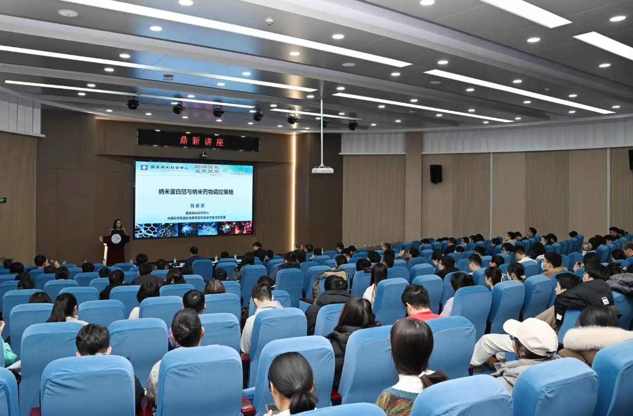 讲座中,陈春英围绕其在纳米蛋白冠与纳米药物调控等领域的相关研究,向同学们系统介绍了纳米颗粒和纳米药物的体内生物效应研究中面临的主要问题和解决策略。她特别讲述了纳米/生物表界面作用的分析新方法,并利用这些新手段研究纳米颗粒体内转运途径和路线及其体内的最终变化;介绍了课题组在利用蛋白冠及纳米锰佐剂的开发和临床应用的最新进展。在互动交流环节,陈春英针对师生提出的问题进行了详细解答。