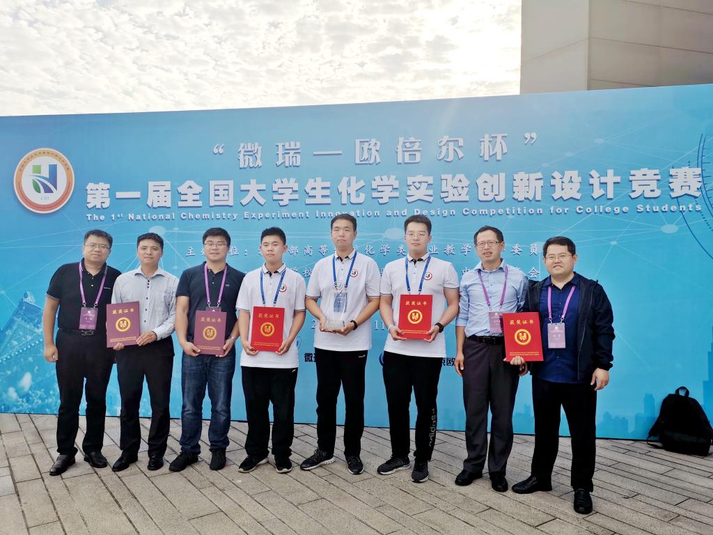 2016级材料化学专业李嘉梁、2017级唐敖庆实验班汪博宇、2017级唐敖庆实验班付薪宇三位同学组成的“纳微风暴”队在首届全国大学生化学实验创新设计竞赛中获得特等奖。