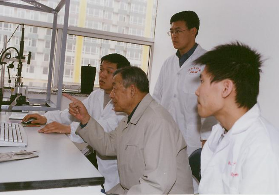 图7 2004年,沈家骢教授与学生讨论工作