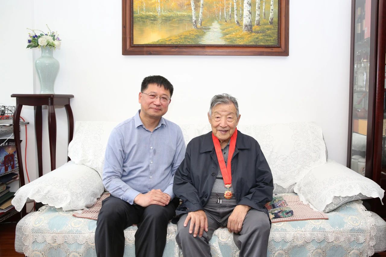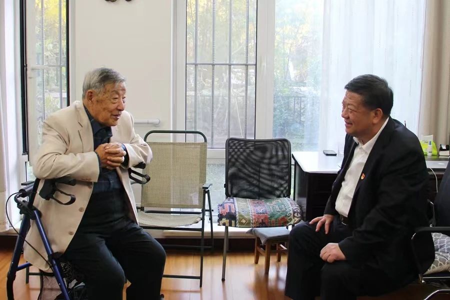 2021年10月7日,校党委书记姜治莹来到沈家骢家中,向沈家骢送上九十寿诞的祝福。