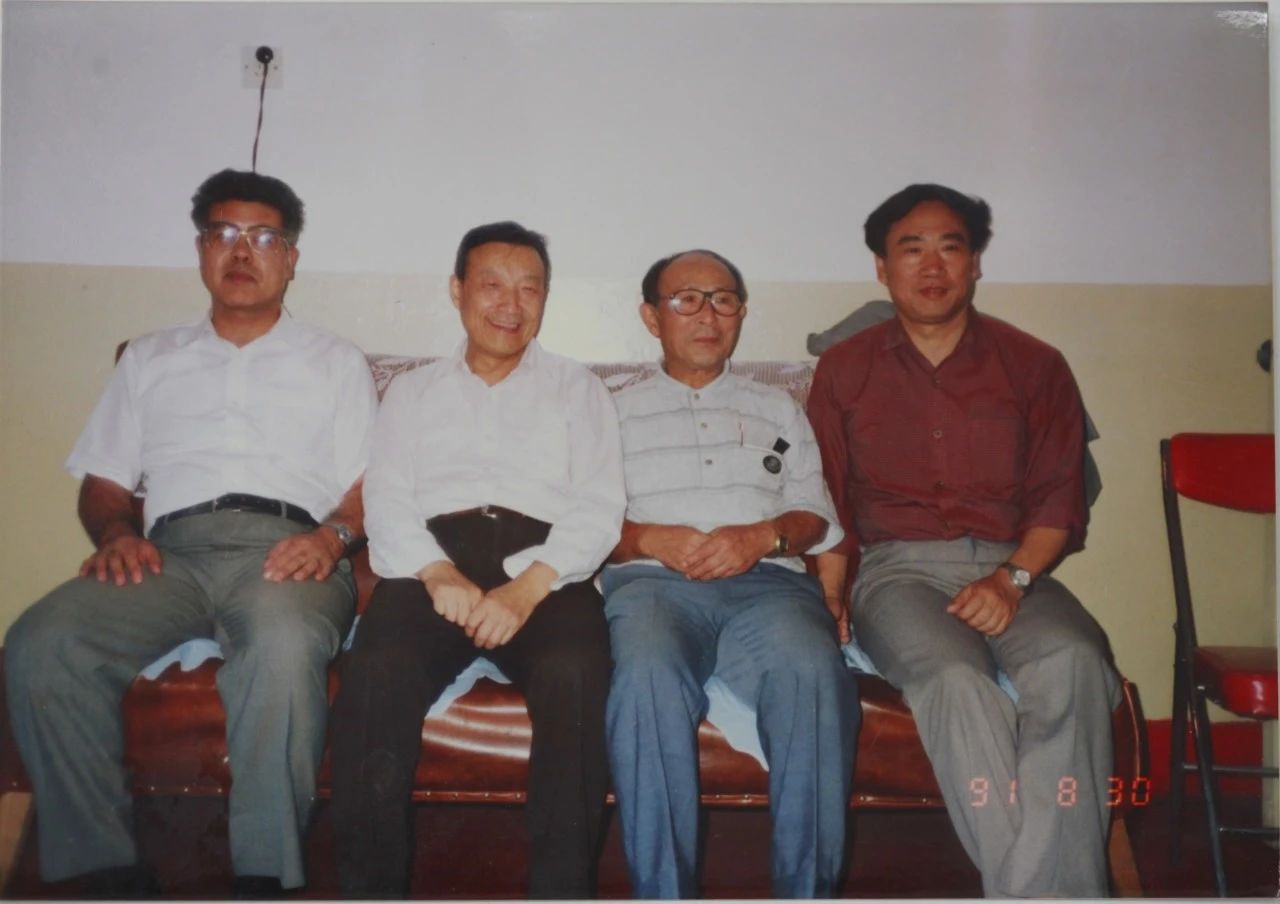 图3 1991年,沈家骢教授(左二)、李惟教授(右一)与日本京都大学矢岛治明教授(右二)、日本神户学院大学冈田教授(左一)交流