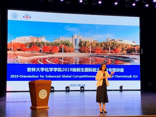 8月28日上午国际合作与交流处处长张广翠作学生国际化培养主题报告