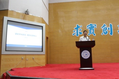 党委书记宁德宽作《坚定文化自信,做好化学传人》的主题报告