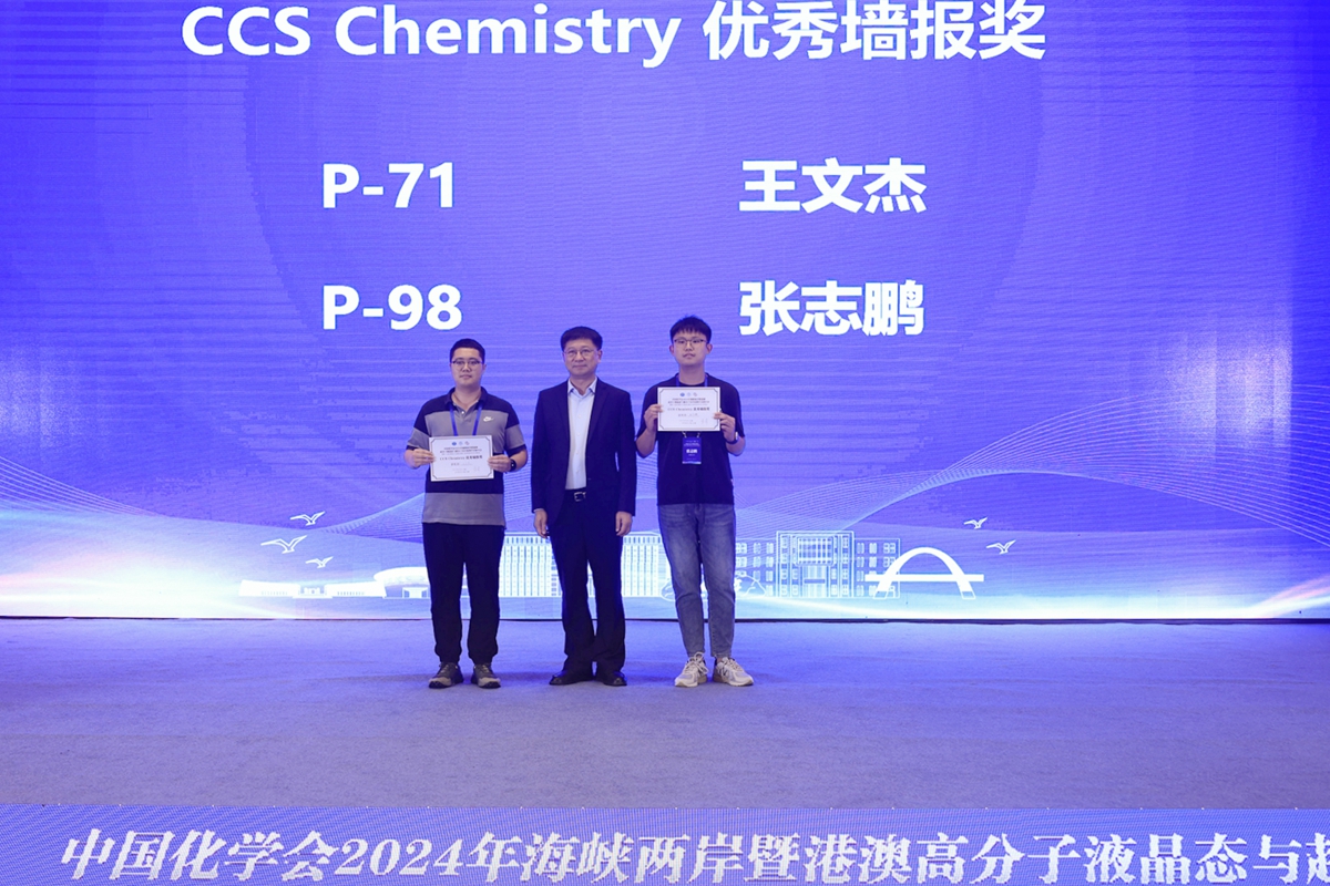在为期两天的学术交流与研讨中,唐智勇、何荣铭、王钻开、郭绍伟、孙俊奇先后作了题为“纳米自组装多孔膜”“嵌段高分子和手性嵌段高分子自组装”“基于固液特征尺度匹配的超材料设计及应用”“基于软物质材料建构阿基米德镶嵌结构”和“可逆交联聚合物”5个精彩的大会报告。在6个主题论坛中,与会专家学者围绕“液晶高分子的分子工程学”“超分子体系的组装与识别”“自组装体系的理论与表征”“液晶高分子功能材料”“可逆交联与自适应聚合物材料”和“生物超分子组装与功能”作了170个邀请、口头和快闪报告,并展示交流了104份墙报。组委会从中评选出了2个CCS Chemistry优秀墙报,10个会议优秀墙报,以及12个优秀的快闪报告。闭幕式上,张希、何荣铭、孙俊奇分别为获奖代表颁发证书。哔咔漫画