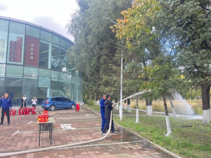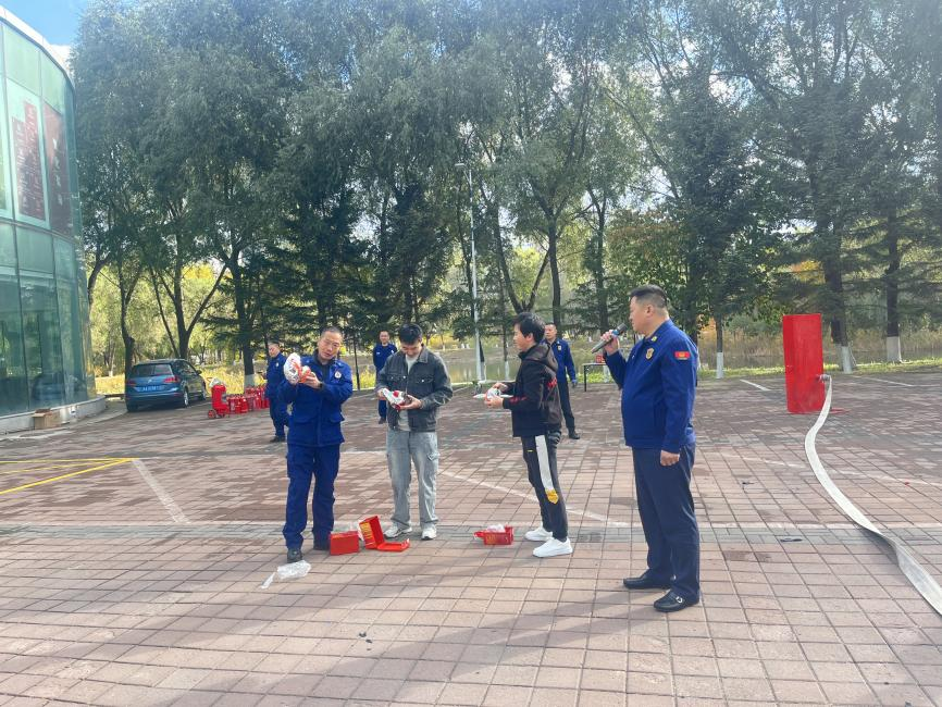 在消防器材实物教学环节,保卫处老师详细讲解并演示了防毒面罩、消火栓、灭火毯、干粉灭火器、二氧化碳灭火器、推车式灭火器等消防器材的正确操作方法,在场学生30余人次参与消防器材的学习和使用。