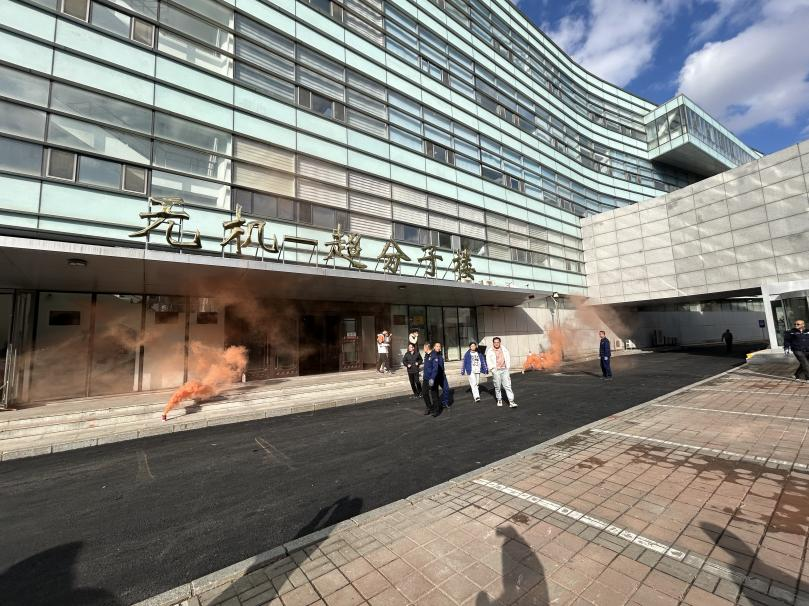 在应急疏散演练环节,演练指挥小组以模拟无机-超分子楼内突发火情为背景,全景演练了突发火情后全楼师生紧急疏散撤离、消防队员灭火等流程。演练过程中,楼内师生疏散过程井然有序,展现了快速反应的能力,演练达到了预期的目标。