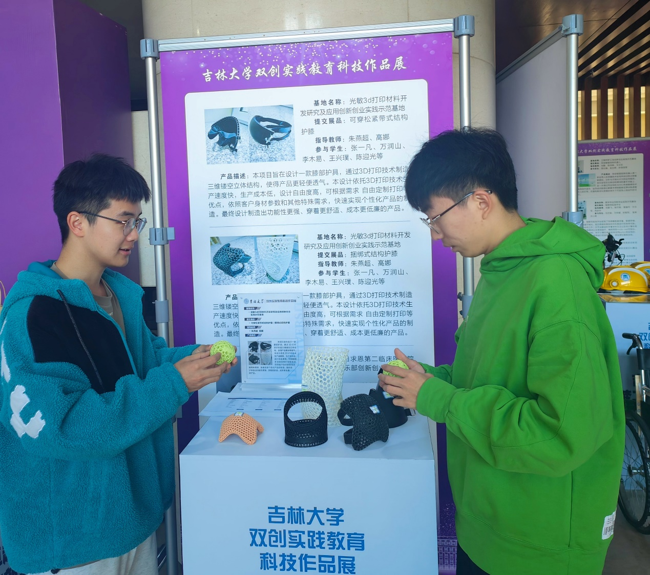 哔咔漫画 哔咔漫画 光敏3d打印材料开发研究及应用创新创业实践示范基地在与苏州博理新材料科技有限公司合作的基础上设计制作的三维立体多孔结构护膝产品参与了本次展会,护膝可用于运动防护以及医疗辅助。2022级化学专业李木易同学为此次参展的讲解员。