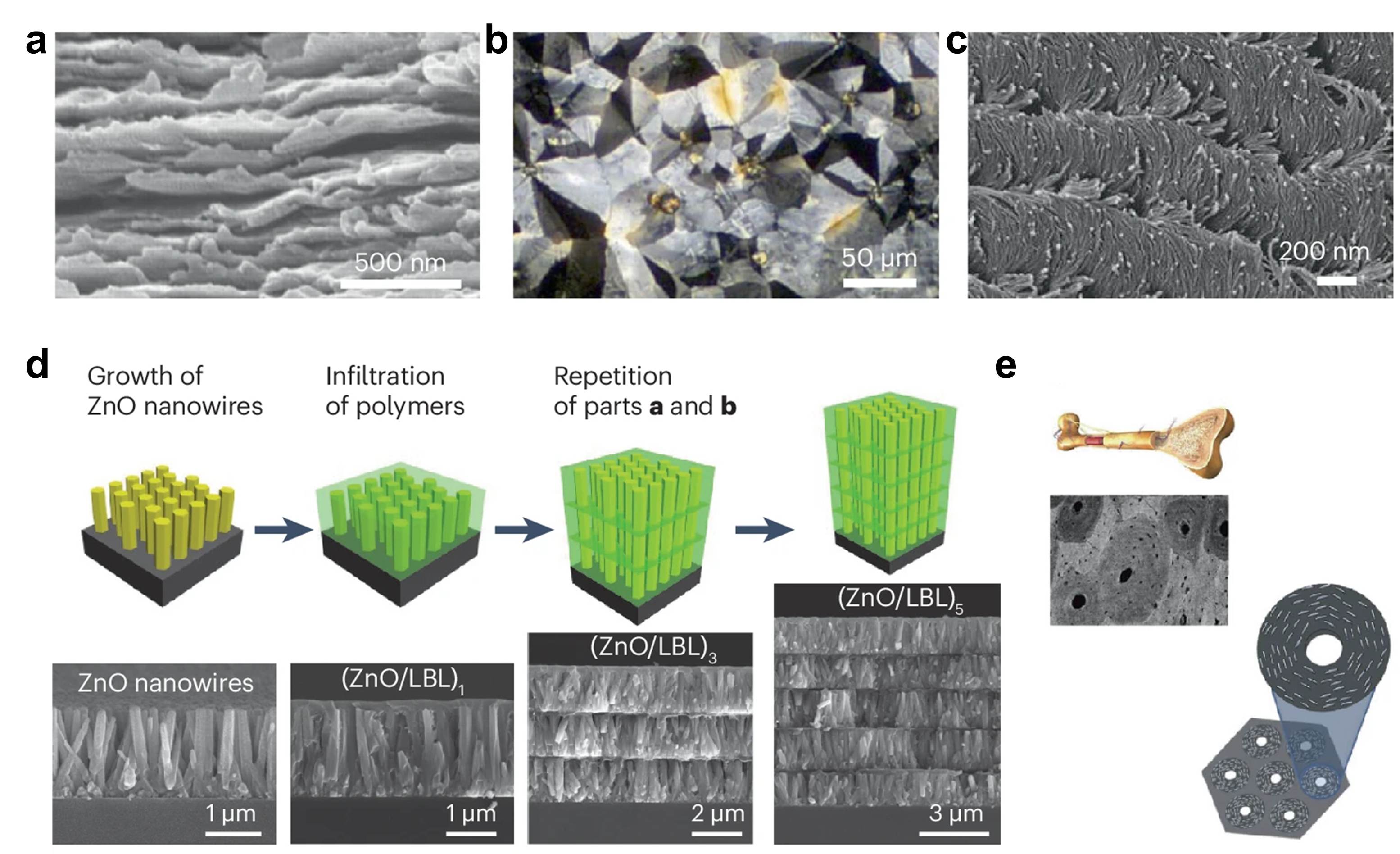 仿生学是工程领域的重要概念,基于对生物原型的组成、结构和功能的模仿,建立分子、材料、工艺和设备的设计原则。随着社会的发展,对兼具多种特性材料的需求持续增加,进一步推动了仿生(纳米)结构领域的巨大发展。这些材料结合了有序和无序的特点,使得它们的结构复杂化,因此难以定量描述和复制。目前,基于人工合成分子和纳米构造基元,人们可以模仿复制生物组织的结构,并成功开发了许多高性能纳米复合材料。但是,为了满足在能源、水、健康等领域对具有更高性能材料的需求,仍需要快速推进材料设计过程,建立多维属性评估体系。因此,亟需从传统的仿生学向定量仿生学发展。