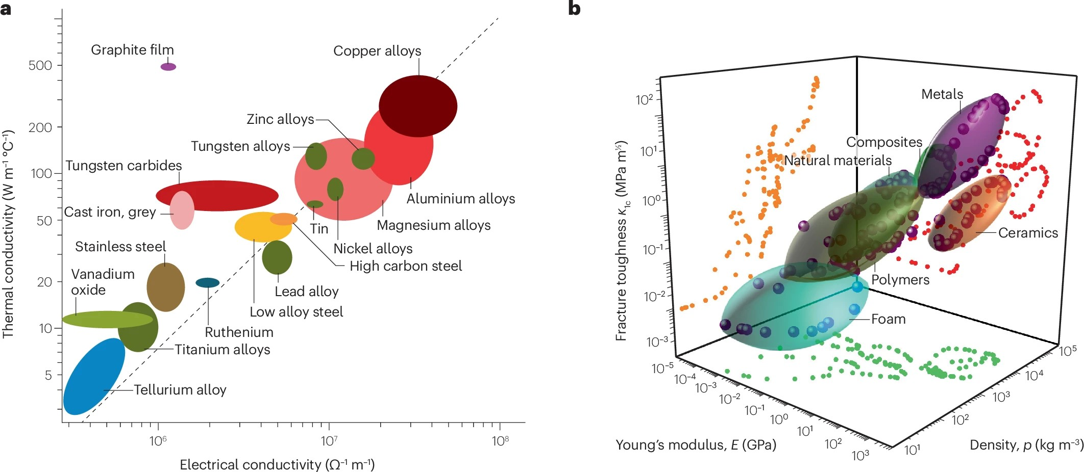 此外,作者还讨论了分子动力学模拟、机械模型和机器学习在定量仿生学中的重要作用(图4)。机器学习可以作为在相应的泰勒级数中建立性质微分的一般途径,非常适合大多数非线性的属性差异预测。将理论、模拟和机器学习相结合,为利用具有高体积密度界面、图论描述、以及分层多尺度结构来实现性能的多维度优化提供了有力的支持,也是定量仿生学的关键所在。