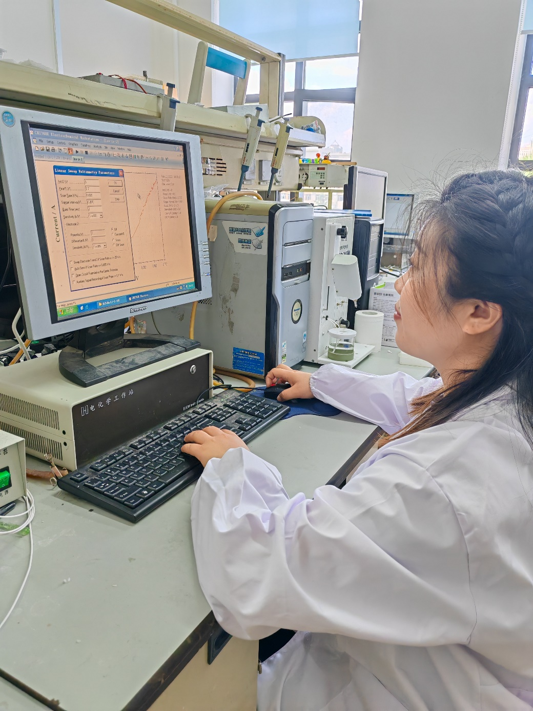 的一名青年学子,她始终秉持着可持续发展和坚持“四个面向”加快科技创新的使命担当,一直致力于寻找高效且具有实际工业价值的催化剂以加快析氧反应的进行,为氢能产业的未来发展贡献着智慧与力量。
