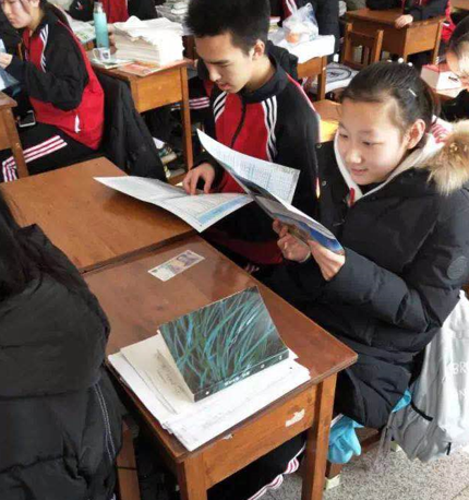在辽宁省锦州中学,高舒扬、王皓雅、李淼、庄婉鑫、汪靓五名志愿者制作的学校宣传展板内容丰富,并把在哔咔漫画