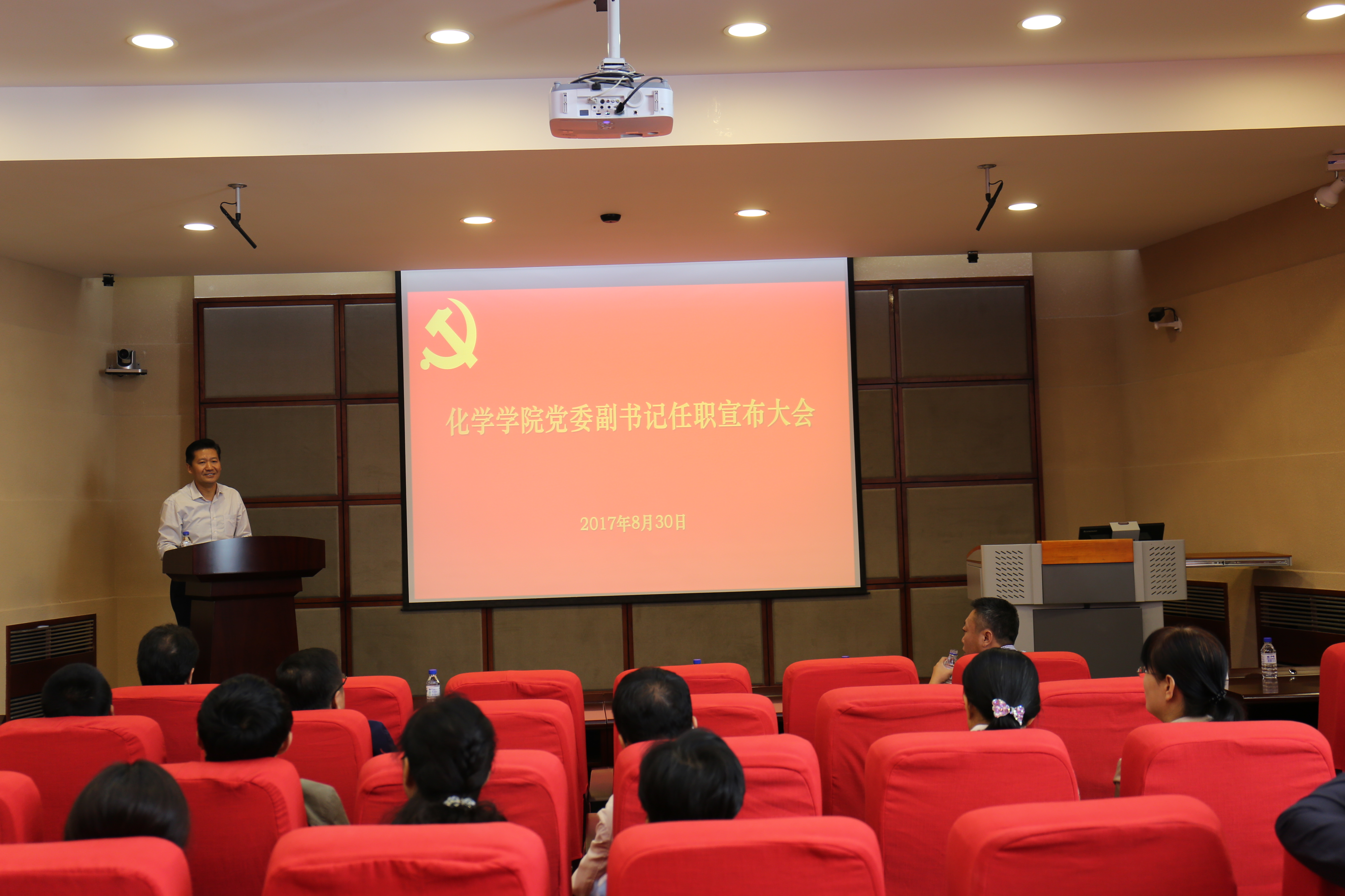 在唐敖庆楼A408会议室召开党委副书记任职宣布会。学院党政领导班子成员,党委委员,纪委委员,学术委员会、学位委员会和教学委员会主任委员,无机合成与制备化学国家重点实验室、超分子结构与材料国家重点实验室、特种工程塑料教育部工程研究正副职,各系所中心主任,教工党支部书记和机关各办公室主任参加了会议。会议由学院院长孙俊奇主持。