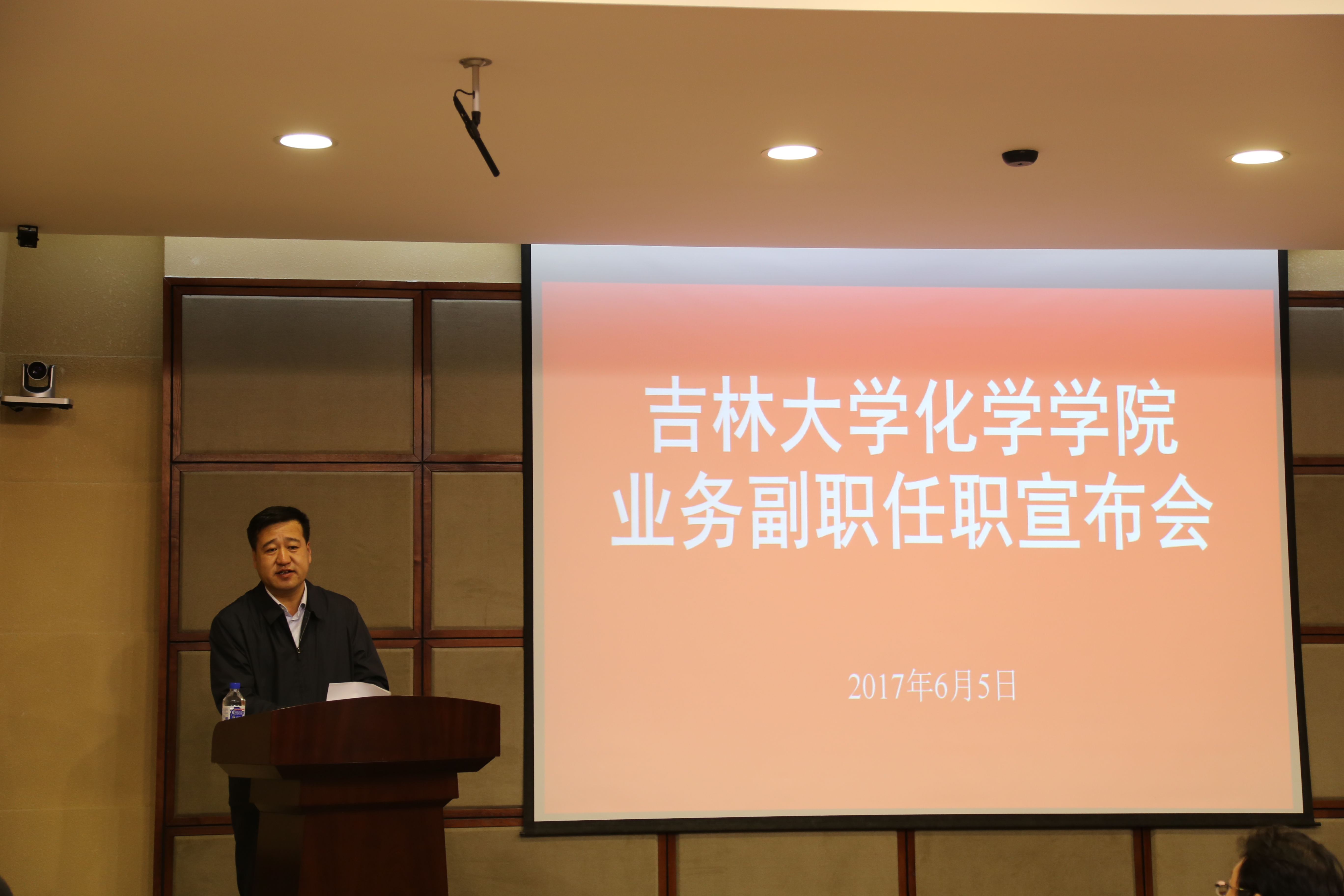 在唐敖庆楼A408召开学院业务副职任职宣布会。学院党政领导班子成员,党委委员,纪委委员,学术委员会、学位委员会和教学委员会主任委员,无机合成与制备化学国家重点实验室、超分子结构与材料国家重点实验室、特种工程塑料教育部工程研究中心负责人,各系所中心主任,教工党支部书记和机关各办公室主任参加了会议。会议由学院党委书记丁世海主持。