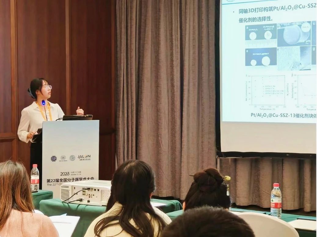 此外她还坚定合作推动创新的理念,参与多领域的学科交叉研究,以共同作者身份在《Journal of the American Chemical Society》和《Chemical Science》等期刊上发表了多篇学术论文。她积极参与学术交流,促进创新协作,在交流讨论中迸发灵感的火花。在第33届全国化学年会、第22届全国分子筛学术大会和唐敖庆博士生学术论坛等大型会议上,她多次做学术报告,分享学术成果与经验,促进学术交流,荣获优秀报告奖、优秀志愿者等荣誉。