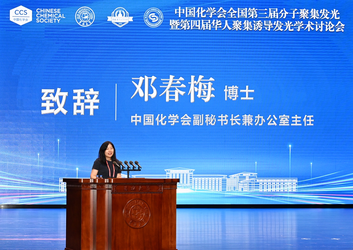 邓春梅在致辞中代表中国化学会向唐本忠教授及其带领的中国化学会分子聚集发光专业委员会成立以来在学术交流、人才培养和科普方面取得的显著成果表示感谢,向哔咔漫画