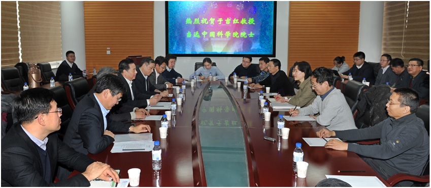 李元元首先代表全校师生员工向于吉红当选中国科学院院士表示祝贺,向培养和支持以于吉红为代表的年轻一代科研工作者成长成才的老一辈科学家致敬,向与于吉红共同奋斗的科研团队为学校学科发展所做出的贡献致谢。