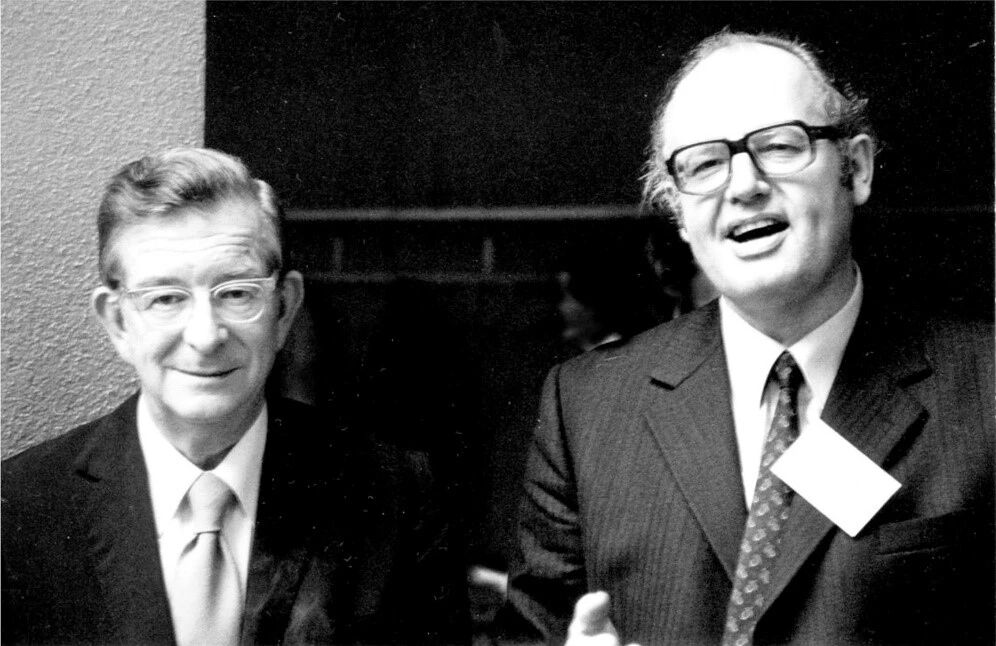 图2.Robert B. Woodward教授(左)与Albert Eschenmoser教授(右)于1979年3月5日合影。