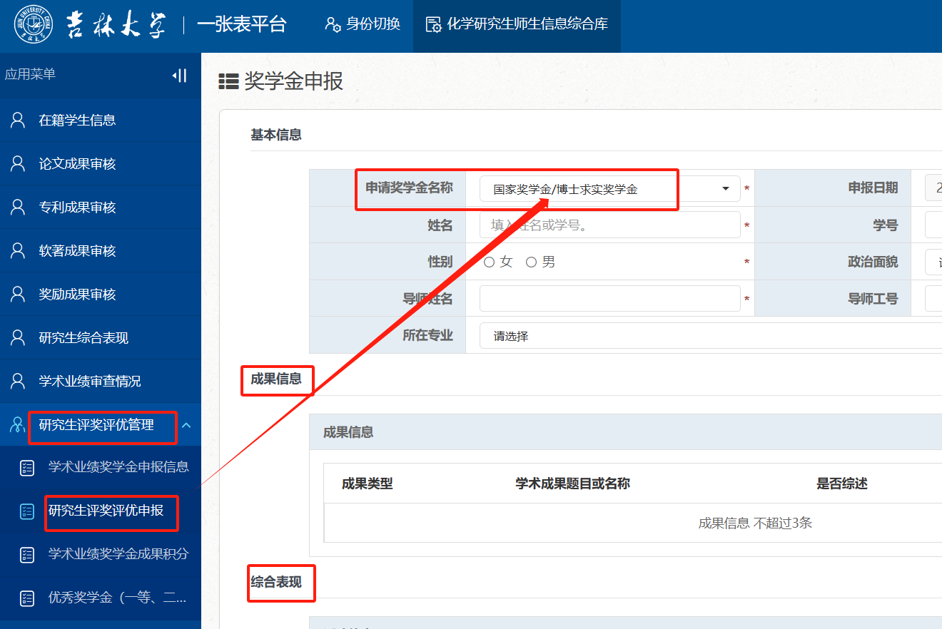 (1)博士研究生国家奖学金和“求实”奖学金合并申报,一次申报可同时申请两类奖学金。硕士研究生使用同一入口申报国家奖学金,申报系统后台自动区分申报人学历层次。申报人应于10月15日16:30前使用个人邮箱账号登录“一张表”平台(//one.bkcomics.net),在“研究生评奖评优管理”-“研究生评奖评优申报”栏,点击【新增】进行【国家奖学金/博士求实奖学金】信息填报。