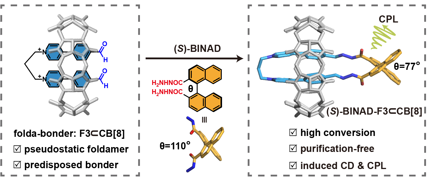 综上所述,从分子折叠到结构锁定,从非共价识别到共价连接,“折叠键合”策略实现了超分子组装体系在构筑效率、结构选择性与功能调控三方面的展示。不仅为多组分协同组装与动态共价构筑提供了全新思路,也为构建新型手性材料、光学功能器件及可控响应分子系统奠定了坚实基础,展示了其在超分子化学与功能材料领域的广阔应用前景。