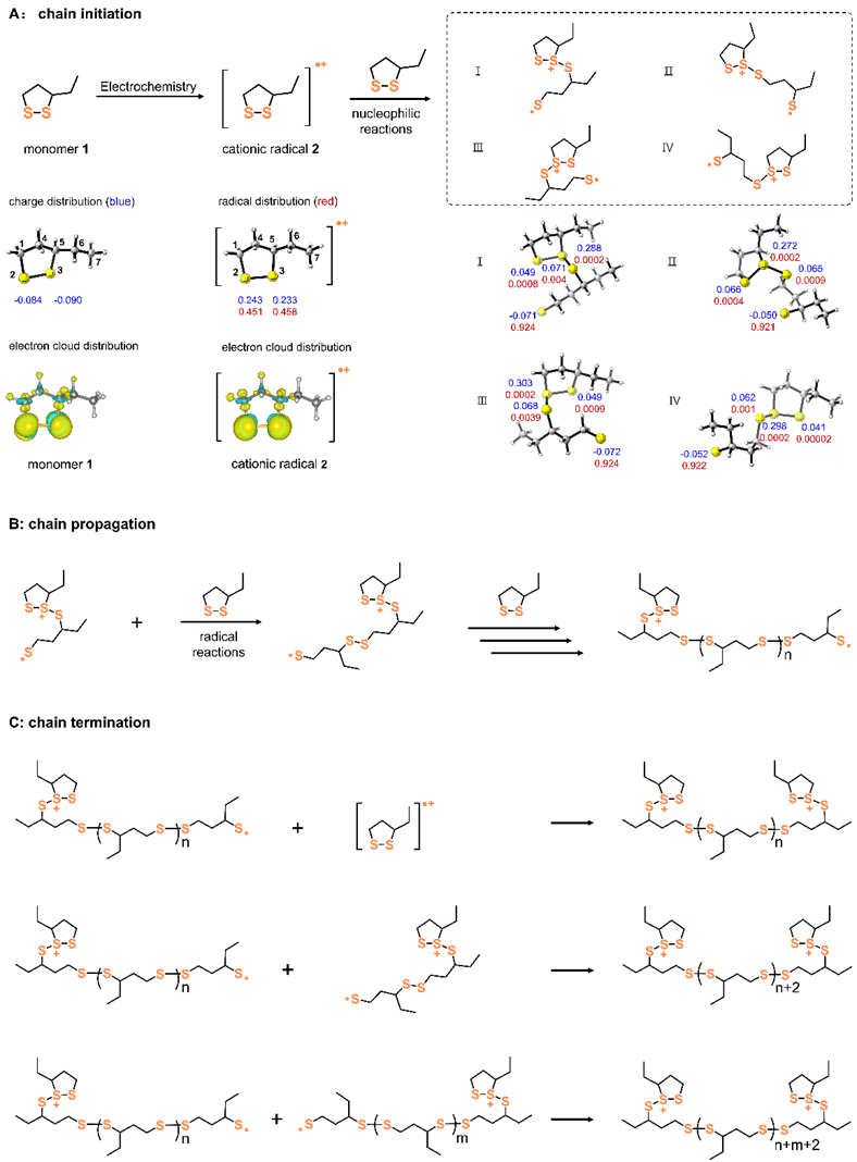 该项研究首次实现了1,2-二硫戊环及其衍生物在室温下的电化学聚合。该方法具有反应条件温和、操作简便、聚合快速、单体普适性强等显著优势,为规模化制备提供了新途径。更重要的是,该项研究提出了阳离子自由基(TASS·+)引发开环聚合的全新机理,丰富了聚硫辛酸合成化学的理论。利用该方法制备的聚合物单体转化率高、分子量大,并展现出优异的黏附性、光学透明性及阻尼特性。