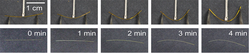 图:单晶受力物理弯曲过程(上)及盐酸气氛中的化学弯曲过程(下)