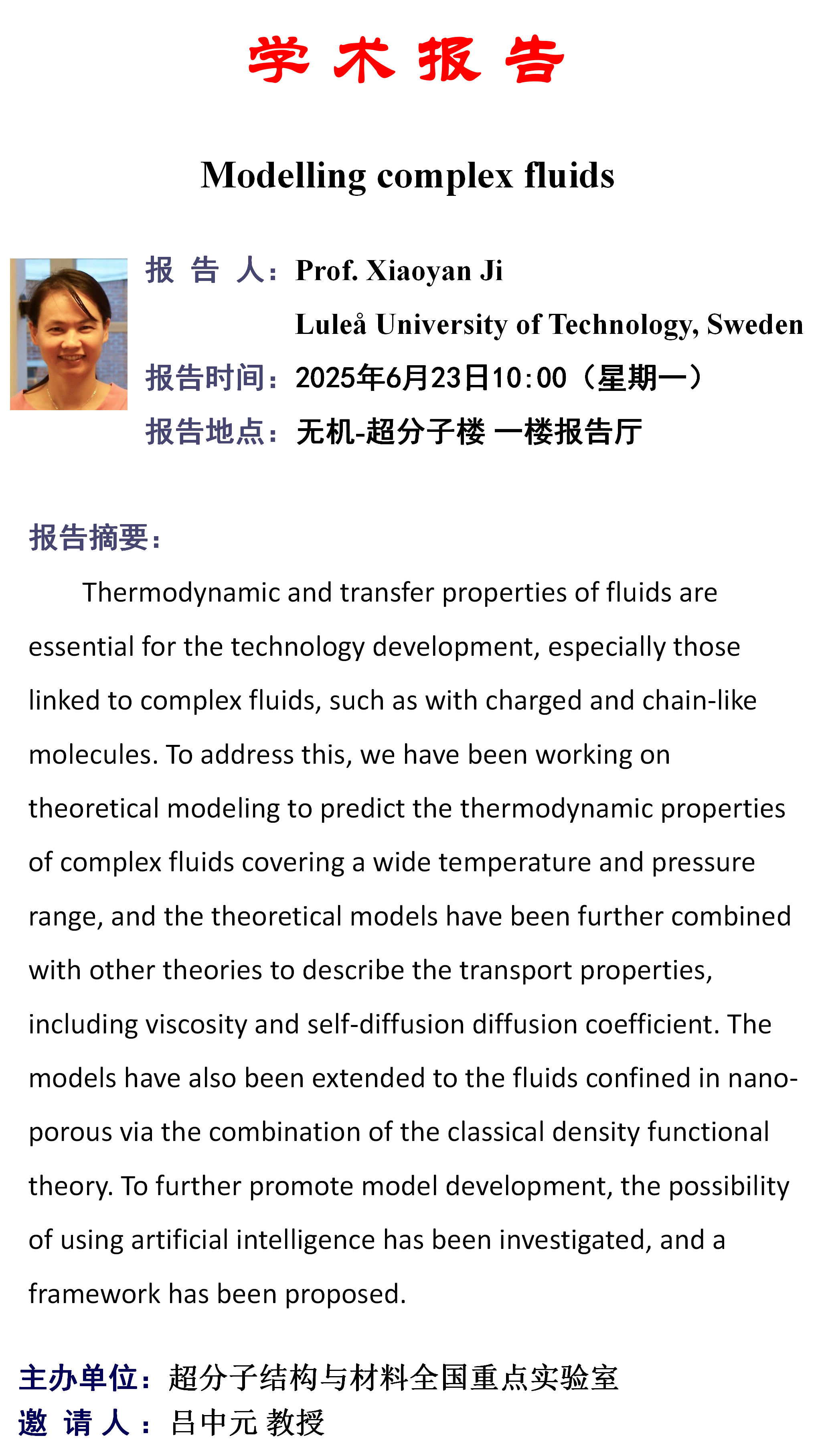 中心校区 无机-超分子楼 一楼报告厅