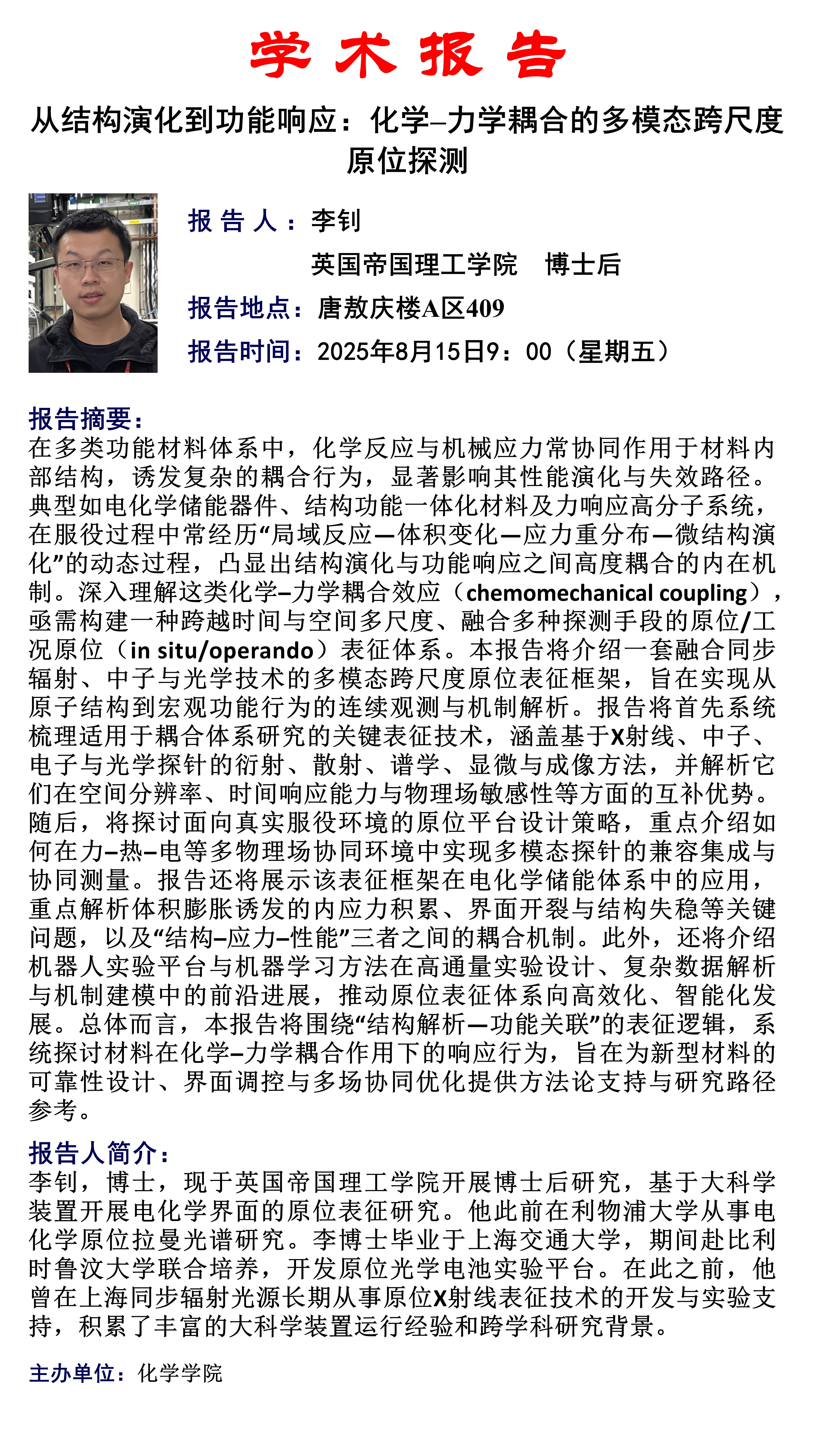 从结构演化到功能响应:化学–力学耦合的多模态跨尺度原位探测