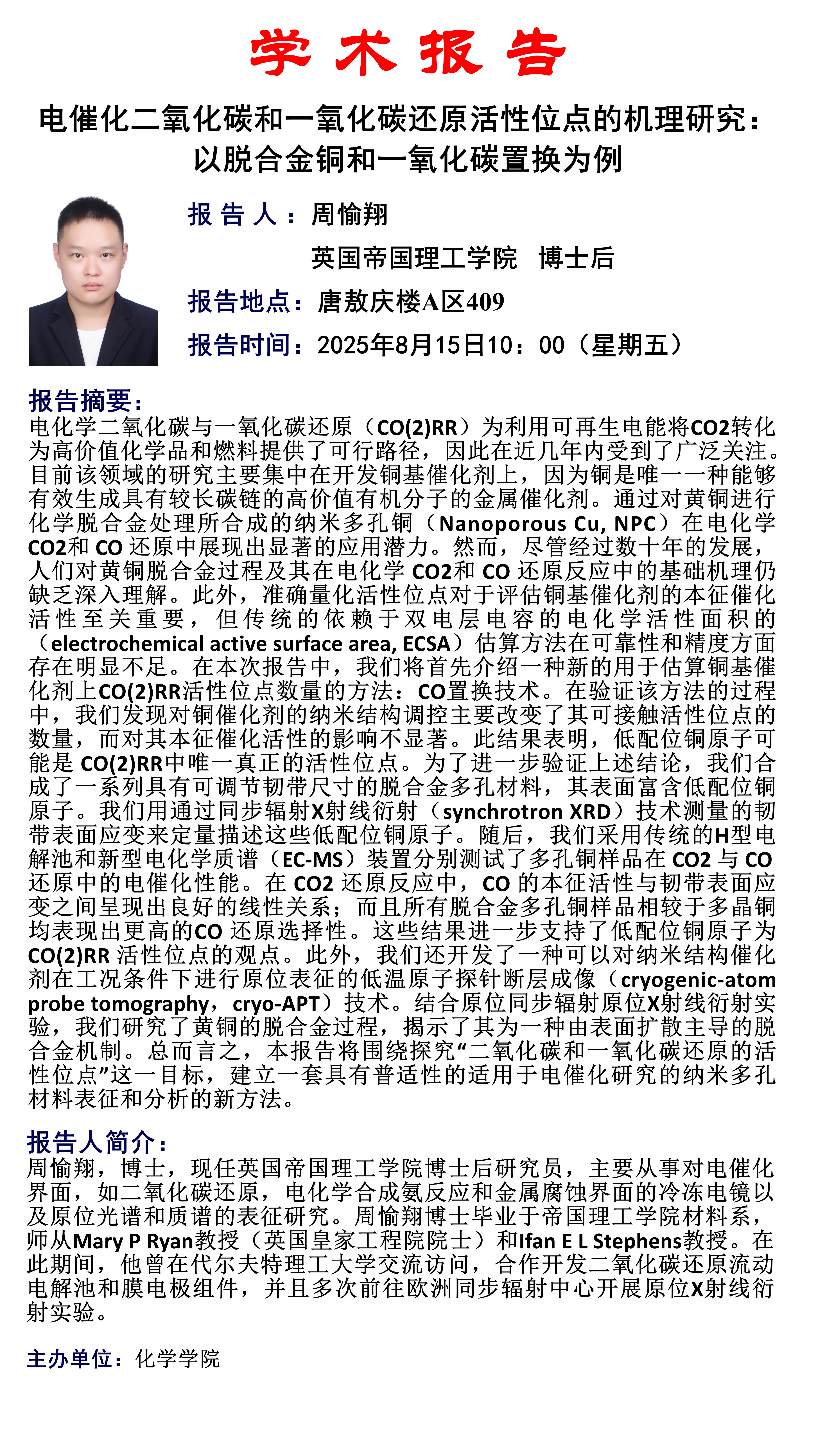 电催化二氧化碳和一氧化碳还原活性位点的机理研究:以脱合金铜和一氧化碳置换为例
