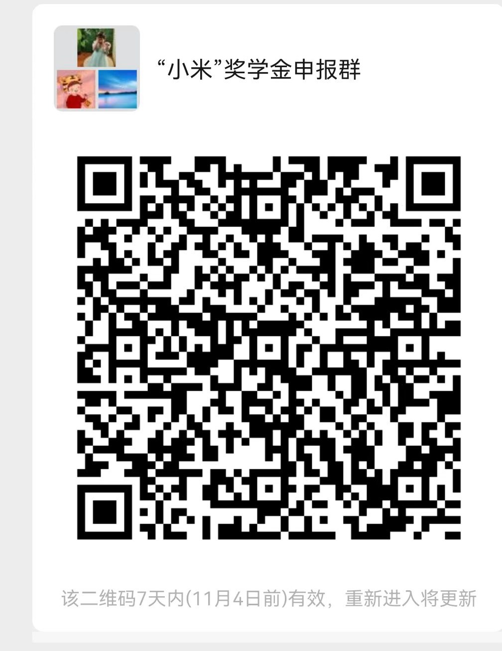 申报人于2022年10月30日(周日)前将以下材料统一发送至[email protected]:文件名:小米奖学金+姓名,同时扫码进群;