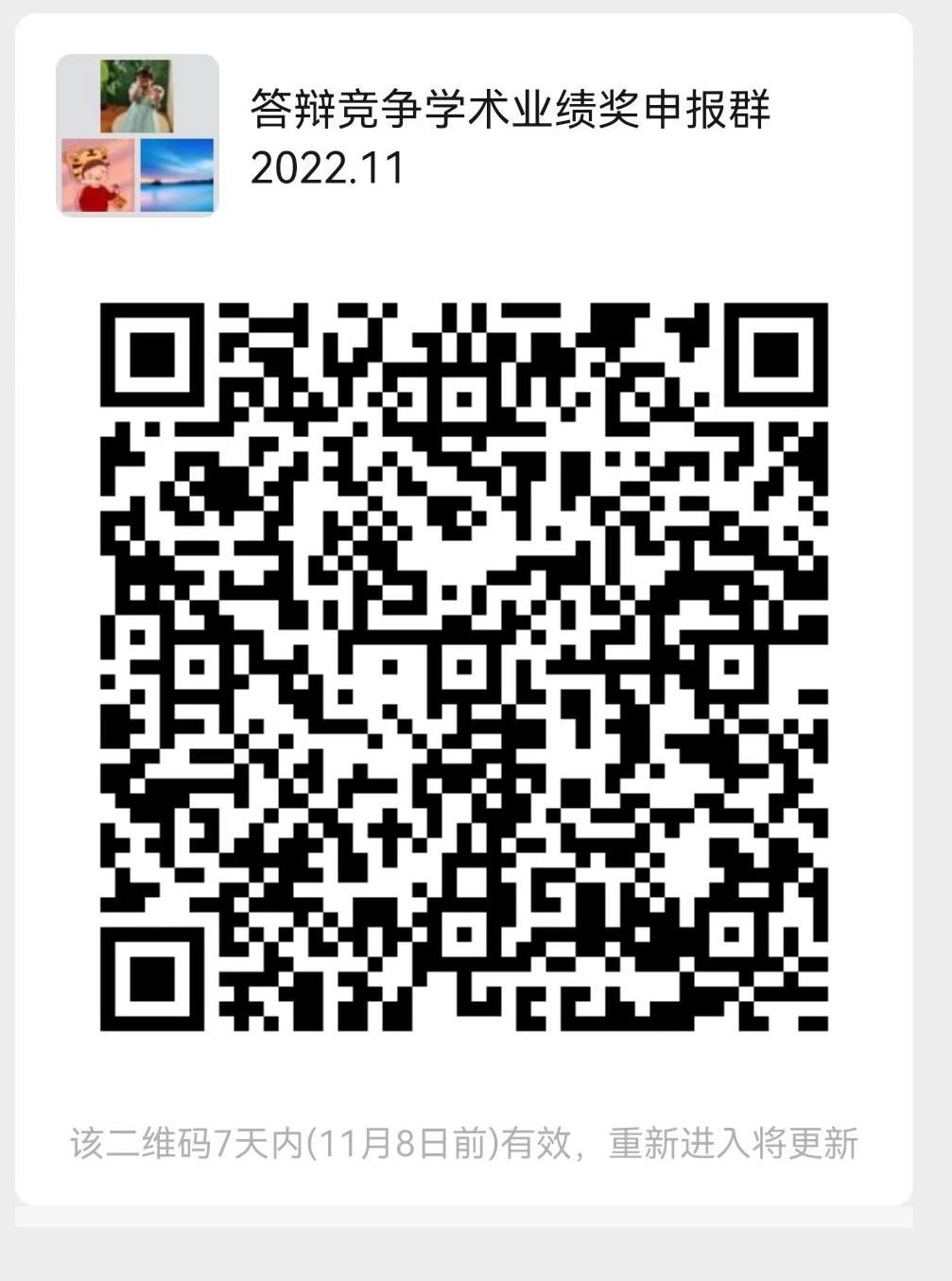 请申报答辩的同学于11月2日14:00前扫码加入微信群,11月2日19:00前进行群内“拟申报奖学金等级”小程序报名。申报竞争答辩的同学准备3分钟PPT,红色字体初评获奖候选人务必认真看清楚可申报竞争等级,不答辩视为获得默认等级。初步定于11月3日下午或者晚上进行腾讯会议线上答辨(具体时间和会议号在答辩微信群内发布)。