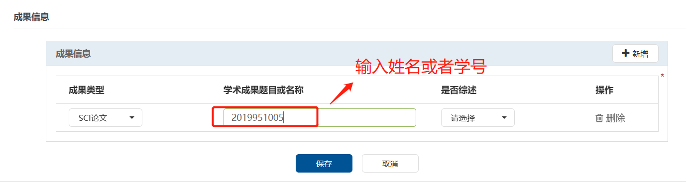 申报研究生于5月8日前使用个人邮箱账号登录“一张表”平台//one.bkcomics.net,在“研究生评奖评优管理”-“研究生评奖评优申报”栏,点击“新增”进行信息填报及佐证材料上传,其中成果信息只需要输入“姓名或者学号”,然后在已审核通过的成果库中选择3篇代表作参评。同时扫码入“2023届优秀毕业生申报群”。成果库中未录入的成果需及时录入-导师审核-科研办姜老师审核。