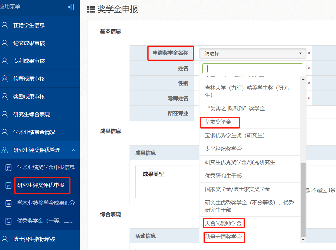 (1)申报人于11月30日12:00前使用个人邮箱账号登录“一张表”平台(//one.bkcomics.net),在“研究生评奖评优管理”-“研究生评奖评优申报”栏,点击【新增】进行【华友奖学金】信息填报,同时扫码加入申报微信群。