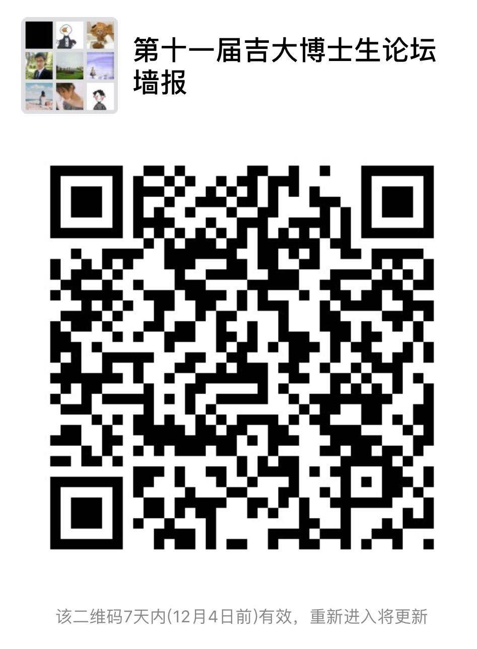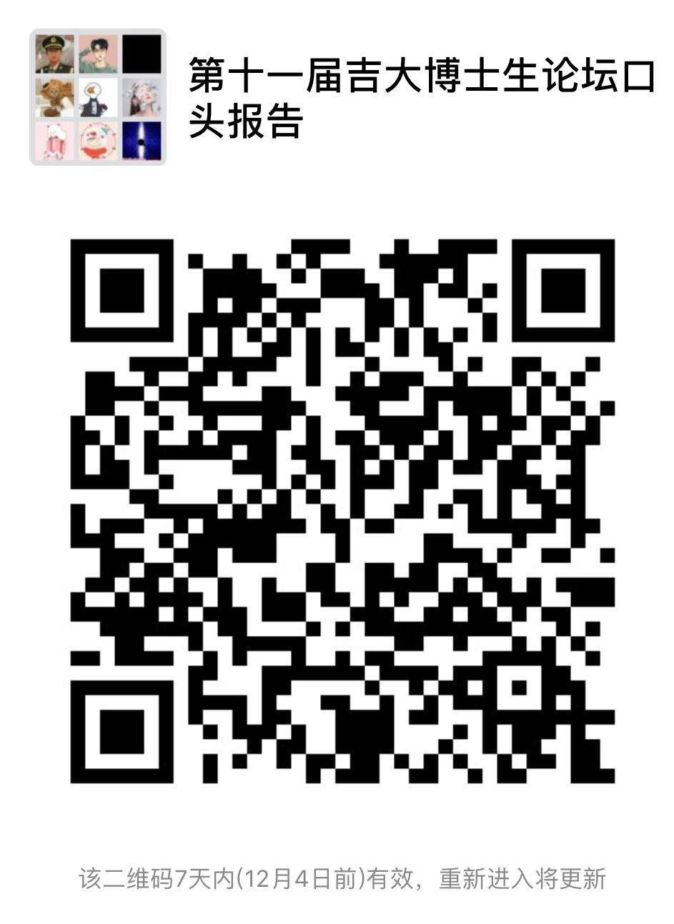 由吉林省科协、吉林省化学会、哔咔漫画 研究生院研究生工作部联合举办的第十一届哔咔漫画 博士生学术论坛暨第五届吉林省科协论坛将于12月6日、12月7日在哔咔漫画 举办,经过初筛,参加口头报告及墙报报告的名单见附件一、附件二。请相关同学扫描以下二维码于11月27日18点前加入微信群(否则视为放弃参会),稍后将在微信群内发布下一轮会议通知。