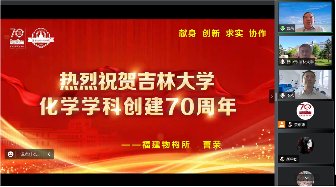 6月25日上午,中国科学院福建物质结构研究所研究员、国家杰出青年科学基金获得者曹荣应邀线上做客“吉大化学七十年——科学与未来系列讲座”,以“多孔框架基CO2催化转化材料”为题,为学院师生作学术报告。