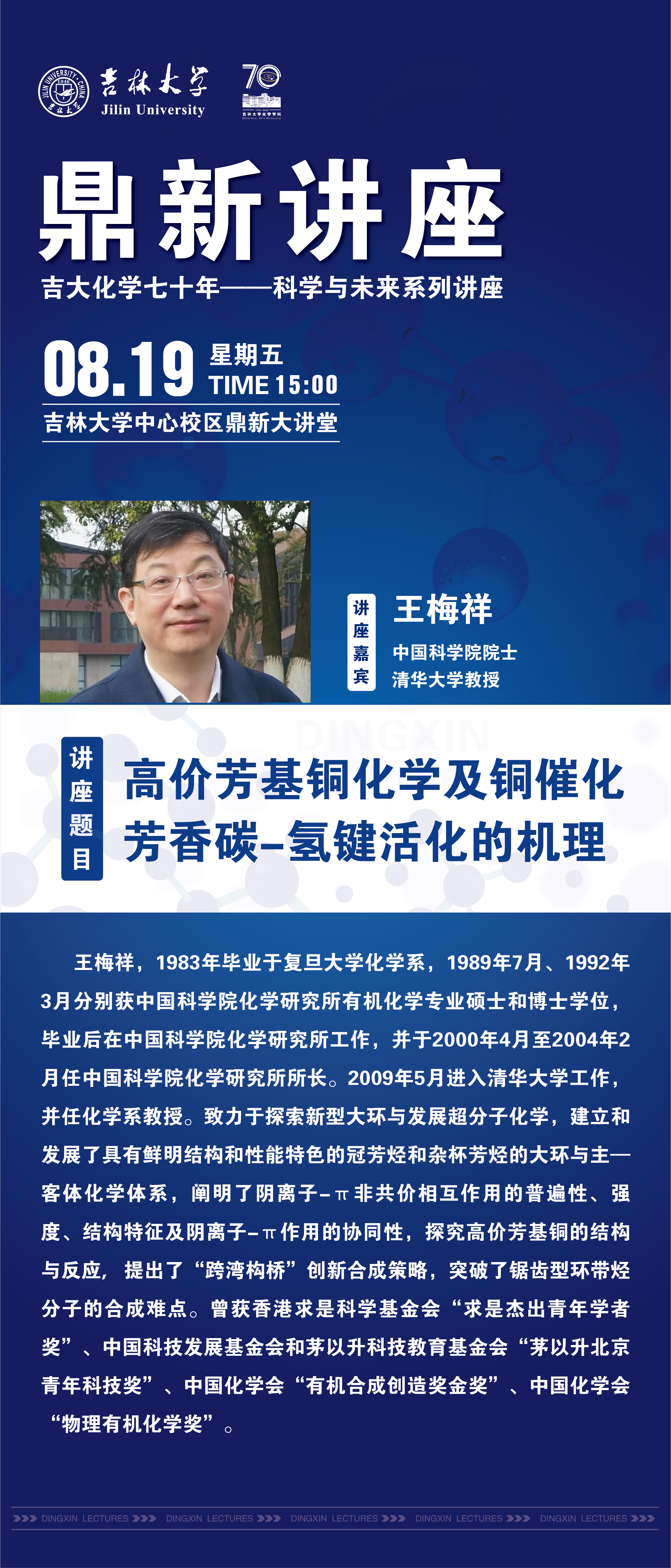 吉大化学70年院庆系列活动——科学与未来系列讲座:高价芳基铜化学及铜催化芳香碳-氢键活化的机理